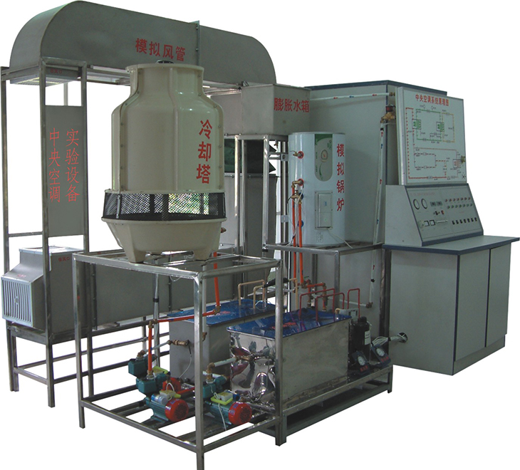 中央空調(diào)實驗設(shè)備是將中央空調(diào)微型化,同時保持整個中央空調(diào)系統(tǒng)的完整性和合理性。本實驗系統(tǒng)采用微機控制能單獨演示中央空調(diào)的夏天制冷、冬天制熱循環(huán),控制系統(tǒng)由電腦控制與手動控制二種方法演示。為了解各種參數(shù)的變化情況和系統(tǒng)的工作狀況。實驗臺增加了一些輔導(dǎo)結(jié)構(gòu),使其能人為地制造各種實際中可產(chǎn)生的系統(tǒng)故障,方便學員了解故障的產(chǎn)生和排除故障的方法。