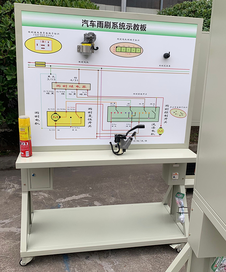 2.示教板面板采用耐創擊、耐污染、防火、防潮的高級鋁塑板,表面經特殊工藝噴涂底漆處理;學校學員可直觀對照電路圖和實物,認識和分析汽車雨刮和清洗系統的工作原理。