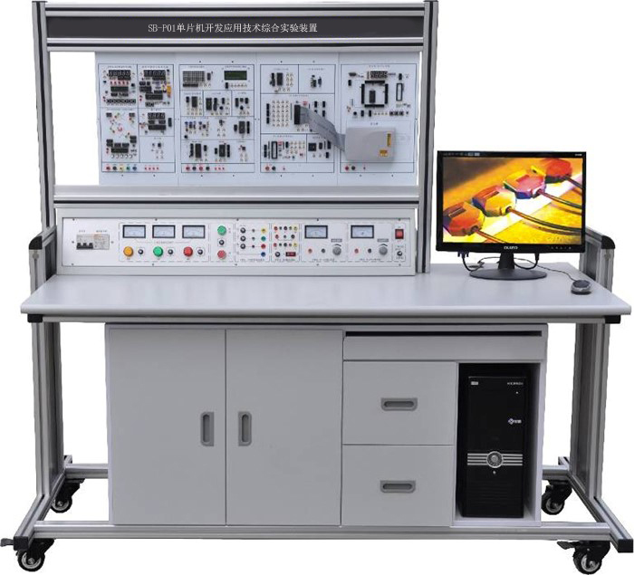 單片機(jī)開發(fā)應(yīng)用技術(shù)綜合實驗裝置由控制屏、實驗掛箱、實驗桌組成,通過本實驗臺可完成單片機(jī)的接口擴(kuò)展、數(shù)據(jù)采集、數(shù)據(jù)顯示、鍵盤控制、定時器、打印機(jī)接口等實驗,配備有仿真器。