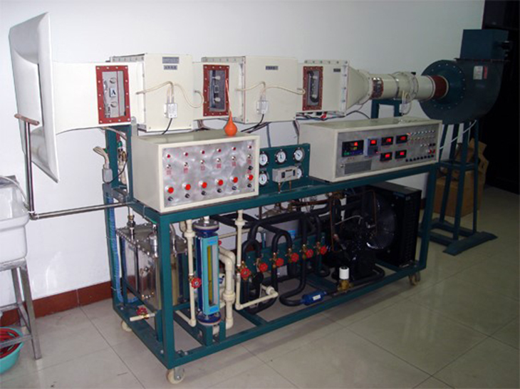 本裝置集直流空調(diào),制冷壓縮機(jī)性能,制冷熱泵,表冷器性能,加熱器性能于一體,可進(jìn)行空氣的加熱,加濕,冷卻,干燥,蒸發(fā)器,冷凝器進(jìn)行換相,可測出各點溫度、濕度、壓力、風(fēng)量、水流量及功率,計算出制冷量、功率、制冷系數(shù)、效率、并進(jìn)行熱平衡計算。