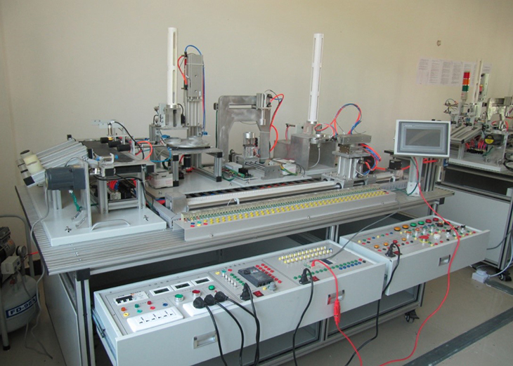 自動生產線實訓裝置由由鋁合金導軌式實訓臺、典型的機電一體化設備的機械部件、PLC模塊、變頻器模塊、按鈕模塊、電源模塊、模擬生產設備實訓模塊、接線端子排和各種傳感器、計算機等組成。整體結構采用開放式和拆裝式,實訓裝置用于機械部件組裝,可根據現有的機械部件組裝生產設備,也可添加機械部件組裝其他生產設備,使整個裝置能夠靈活的按教學或競賽要求組裝具有生產功能的機電一體化設備。模塊采用標準結構和抽屜式模塊放置架,互換性強;按具有生產性功能和整合學習功能的原則確定模塊內容,使教學或競賽時可方便的選擇需要的模塊。設備需完全符合電工電子全國職業技能大賽所要求,同時還要求具有可拓展功能,可以組成更加大型的生產模擬系統,以配合各個用戶學校不同層次,不同專業的教學及培訓要求。