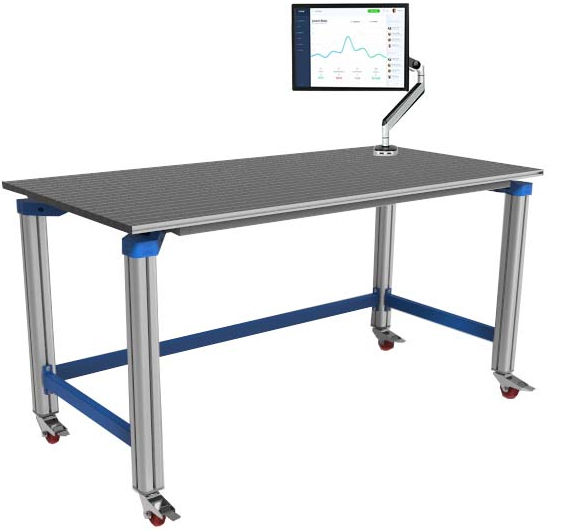1.采用工業鋁合金型材框架設計,臺面為鋁合金型材操作板,單根型材截面≥20×80mm,型材槽間距≤40mm,桌腳截面≥70×70mm。 2.實訓工作臺尺寸:約1500mm×960mm×800mm。 3.配有主機托盤及鍵盤抽屜。 4.底部設有帶剎車萬向輪,方便移動布局。 5.配裝有顯示器旋臂支架。 |