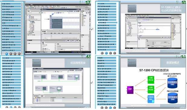 配有S7-1200 PLC學習軟件,方便老師教學,提供有功能與特點、模塊安裝、選型、工作原理、支持的數據類型、數據的存取方式、程序結構、編程軟件的安裝、編程軟件界面介紹、硬件的組態、入門實例、PLC變量表的使用、使用交叉引用、組織塊使用示例、基本位邏輯指令、上升沿-下降沿指令、置位-復位指令、接通延時定時器、比較指令、移位-循環移位指令、基本邏輯運算指令、數據塊概述等50多個學習項目。PLC學習軟件參考界面如下:
