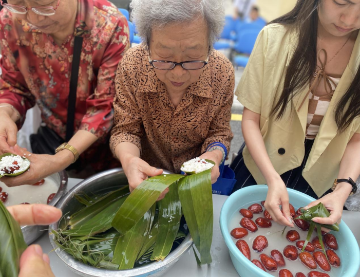 活動現(xiàn)場,由小區(qū)多才多藝的業(yè)主們自發(fā)組織節(jié)目表演,給端午佳節(jié)增添了喜慶氛圍!鞍兆颖荣惉F(xiàn)在開始”!前來參加活動的業(yè)主們熟練地卷著粽葉、放著餡料、裹著繩扎,在一雙雙巧手的加工下,一個個飽滿扎實的粽子便呈現(xiàn)在了大家眼前。大家聊著家常,分享著包粽子的方法和經(jīng)驗,現(xiàn)場一片歡聲笑語,有效加強了鄰里間的交流,促進了團結互助,營造了業(yè)主一家親的濃厚氛圍。