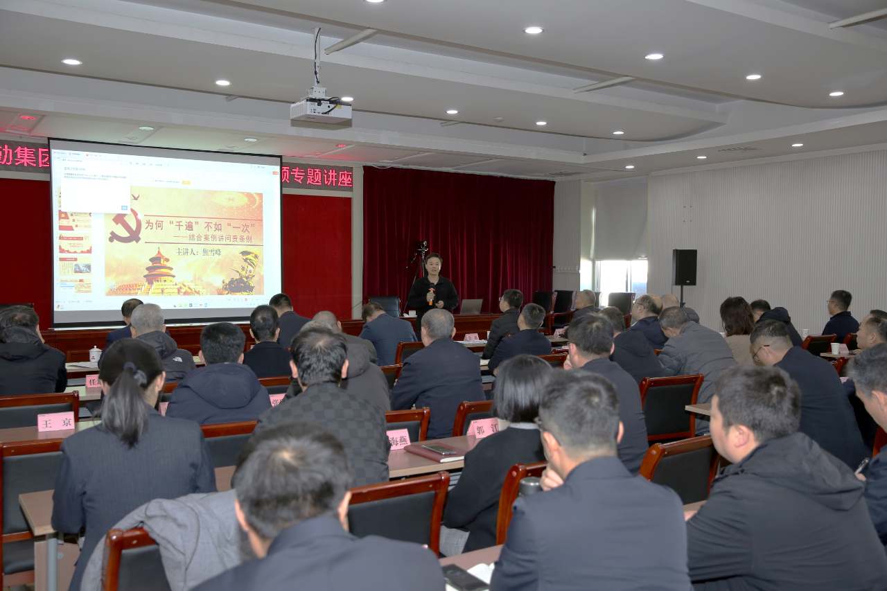 焦雪峰同志重點圍繞《中國共產黨問責條例》,結合實際案例剖析,深入淺出的從黨性錘煉、履行全面從嚴治黨主體責任和黨員干部自身建設三個方面,進行了經驗的分享與講解,為集團廉政風險防控體系建設提供了新的思考和啟迪,為全體黨員干部上了一堂反腐倡廉專題黨課。