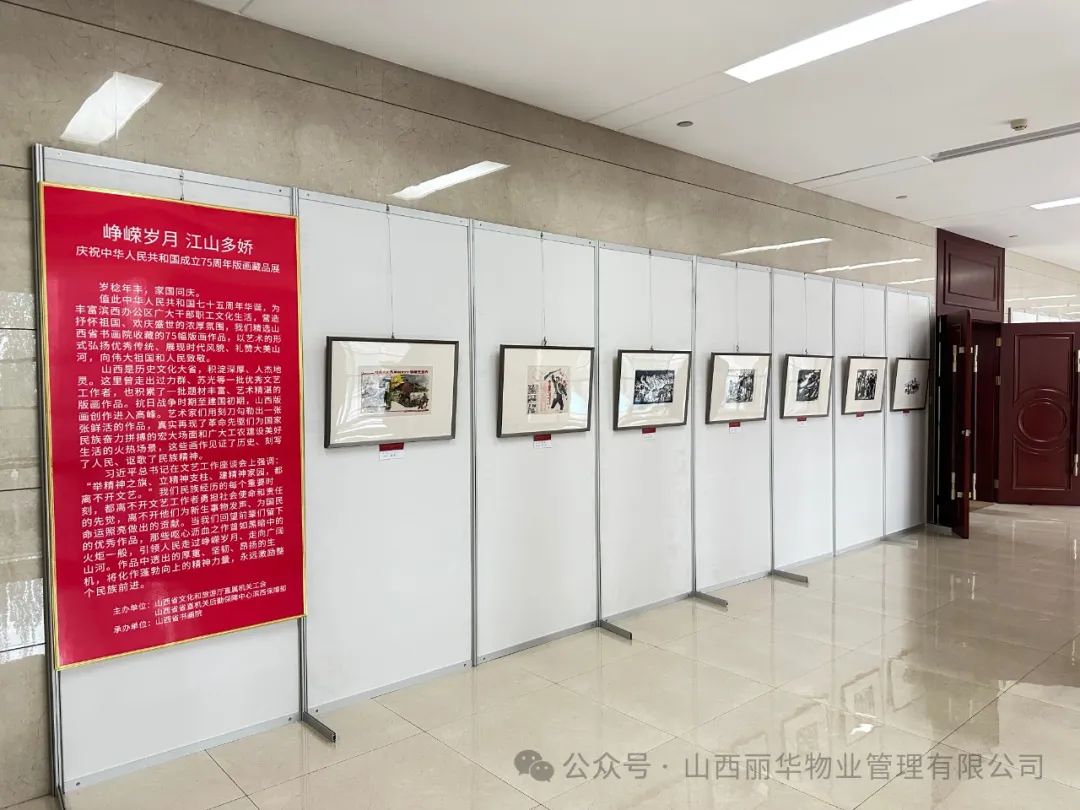 為豐富濱西集中辦公區(qū)廣大干部職工文化生活,營造抒懷祖國、歡慶盛世的濃厚氛圍,由山西省書畫院承辦、麗華物業(yè)協(xié)辦的“歲月崢嶸 江山多嬌”專題版畫藏品展在辦公區(qū)二、三層餐廳走廊展出,以藝術(shù)的形式弘揚(yáng)優(yōu)秀傳統(tǒng)、展現(xiàn)時代風(fēng)貌、禮贊大美山河,向偉大祖國和人民致敬。