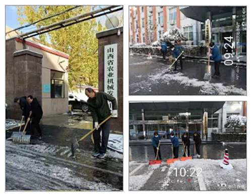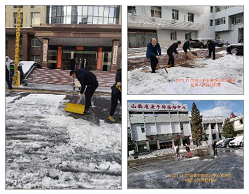 11月6日,龍城太原迎來了入冬以來的第一場(chǎng)降雪,忽如其來的降溫降雪使得道路出現(xiàn)積雪結(jié)冰情況,給人們出行造成一定的安全隱患。7日清晨,按照管理局毛益民局長的指示,晉勤集團(tuán)緊急安排部署各單位清理所轄辦公區(qū)和宿舍區(qū)的積雪和結(jié)冰。各單位積極反應(yīng),為保障干部職工正常出行,立即組織人員清理辦公區(qū)、戶外活動(dòng)場(chǎng)所和路面通道的積雪和結(jié)冰。集團(tuán)領(lǐng)導(dǎo)分別到各辦公區(qū)看望慰問大家,對(duì)大家冒著嚴(yán)寒清雪除冰表示感謝!