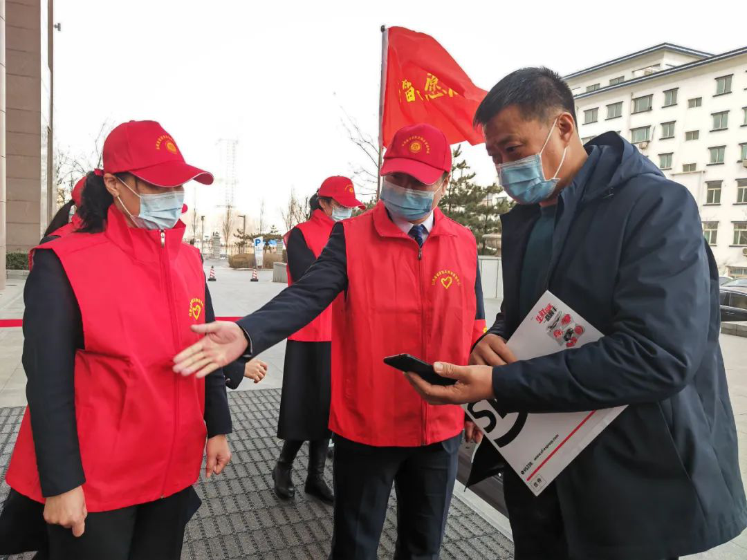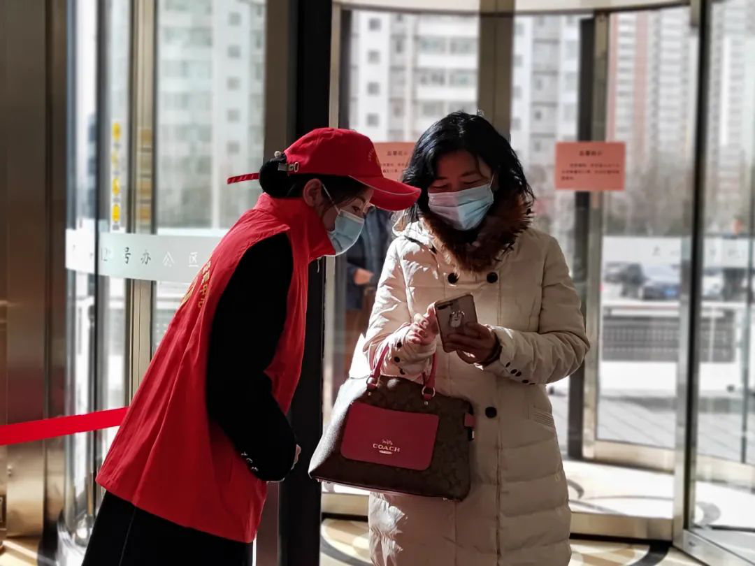在辦公區(qū)域疫情防控卡口協(xié)助工作人員做好疫情防護知識宣傳、出入人員登記、兩碼查驗,體溫檢測等工作。