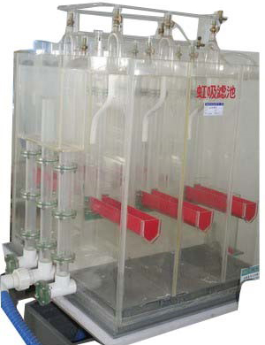 2.虹吸濾池為透明有機玻璃制造,可觀察污水在各腔室內(nèi)的運行情況。