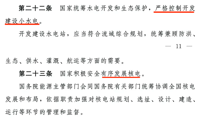 第二十二條:國家統(tǒng)籌水電開發(fā)和生態(tài)保護,嚴(yán)格控制開發(fā)建設(shè)小水電。