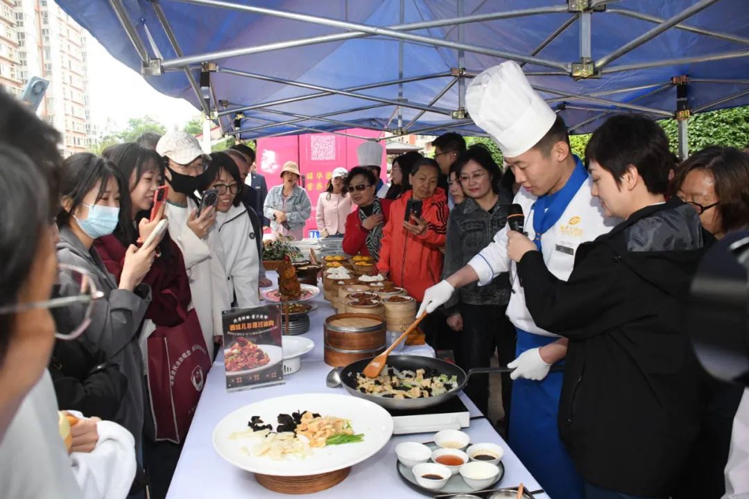 會務(wù)集團(tuán)麗華大酒店廚師現(xiàn)場教學(xué)“非遺過油肉”制作。