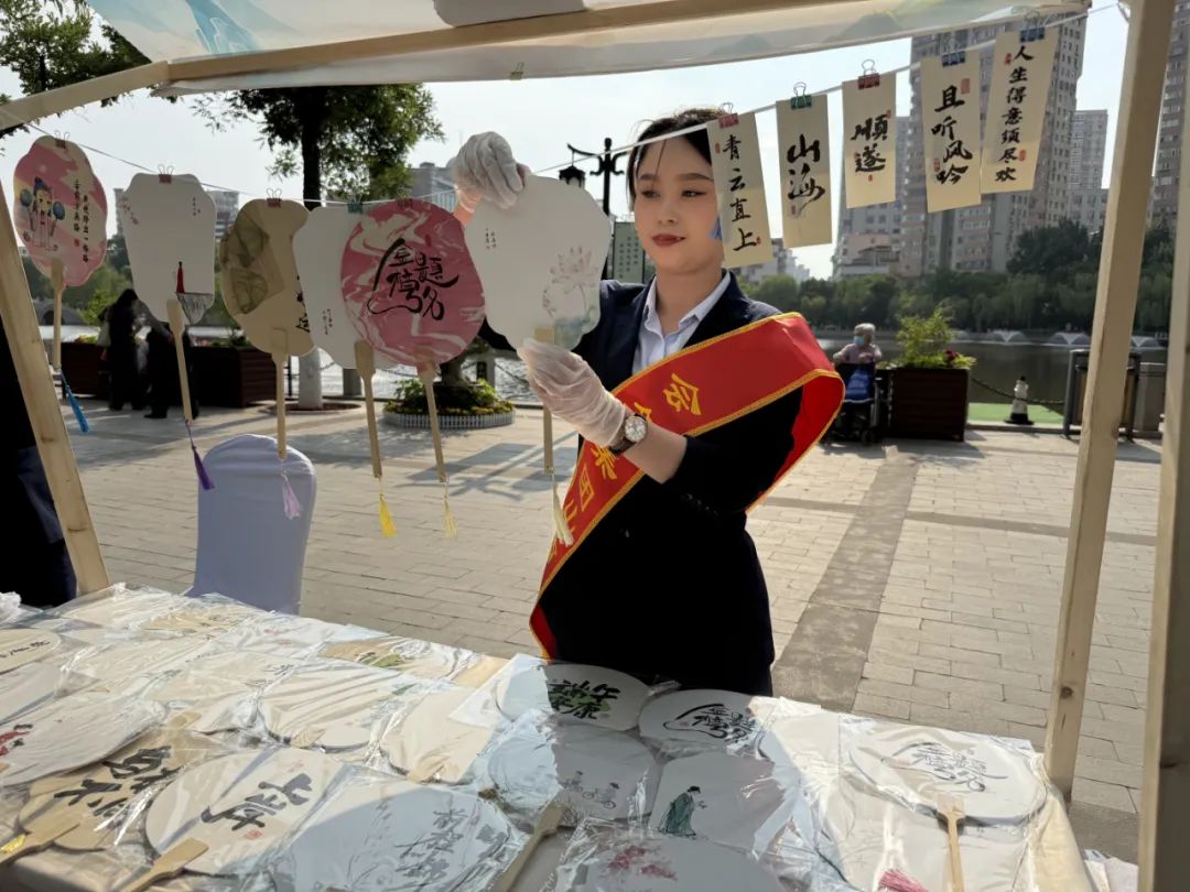 會務(wù)集團(tuán)山西飯店在文瀛湖畔開展非遺漆扇活動。