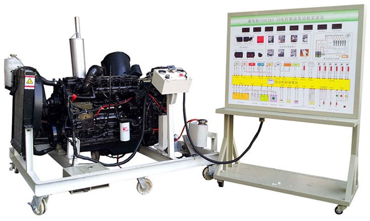 CA1125柴油發動機總成、組合儀表、發動機控制單元、散熱系統(水箱、風扇、上下水管)、排氣系統、進氣系統(進氣軟管、空氣濾清器總成)、原車電路原理圖板及檢測端子面板、蓄電池、電源總開關、燃油箱、油水分離器、油門踏板裝置、可移動機臺架、臺架高溫及轉動等部位加裝防護裝置等。