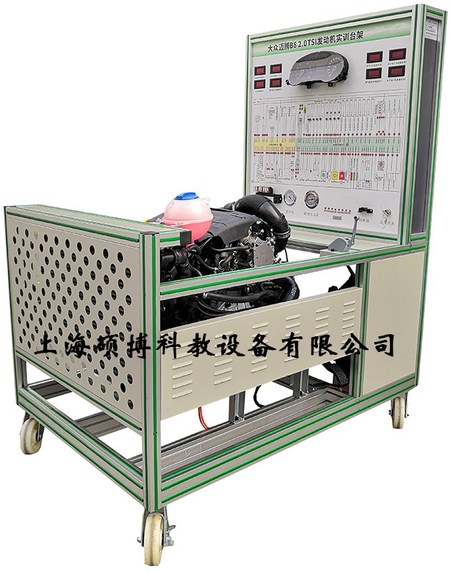 邁騰B82.0TSI發動機實訓臺該設備采用翻新邁騰B8 2.0TSI電控汽油發動機總成及運行附件的固定臺架和運行檢測控制面板臺架兩部分組成。