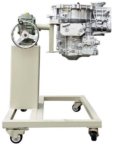 采用減速翻轉(zhuǎn)機構(gòu),可使變速器旋轉(zhuǎn)任意角度,并能任意位置鎖止,便于學(xué)生從不同的角度進行拆卸和裝配。