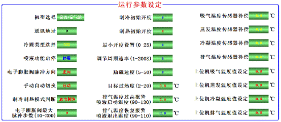 動畫模式:觸摸屏或軟件連接模式下:可顯示壓縮機排氣溫度、吸氣溫度、冷凝溫度、蒸發溫度,可根據溫度實時調節機組過冷度。過熱度。