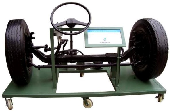 前橋轉向系統實訓臺選用 翻新豪沃ZZ1167汽車動力轉向系統原廠轉向橋總成、轉向器、轉向機構、轉向拉桿、擺臂等系統實物組成,把前橋總成、液壓助力轉向、懸架綜合系統、轉向機構等實物全部更直觀的展露出來,可進行動力轉向和非動力轉向的對比,充分演示原車液壓助力轉向、懸架系統的結構組成與工作過程及的原理、作用及變化。能夠滿足對動力轉向系統的結構組成,工作原理,實踐操作等教學所需。