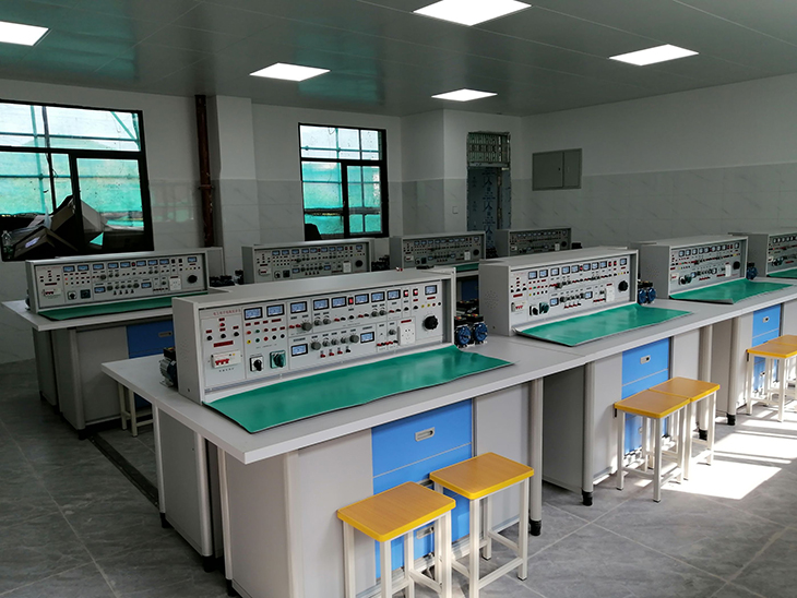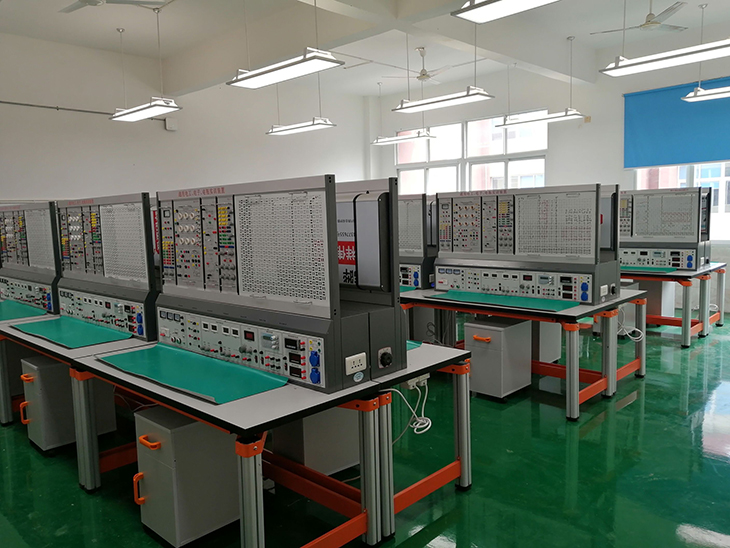 電工實訓室設備主要面向自動化專業學生,通過實訓教學訓練學生熟練掌握電工儀表的使用、常用低壓電器元件的使用、三相交流電動機控制配電線路接線、三相交流電動機控制線路故障排查與檢修,使學生具備工業企業低壓配電基本技術和技能。