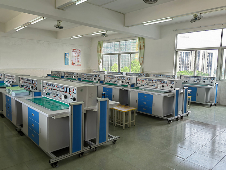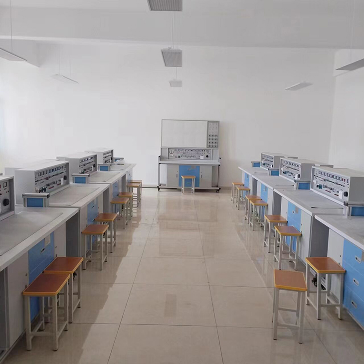 電子實訓室設備是職業院校電子信息工程、自動化、材料科學與工程、汽車服務工程專業學生的電子技能訓練專用實訓室。實訓室配有學生電源、萬用表、電烙鐵等設備工具,可滿足職業院校學生的電子實訓計劃安排。