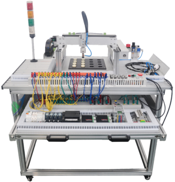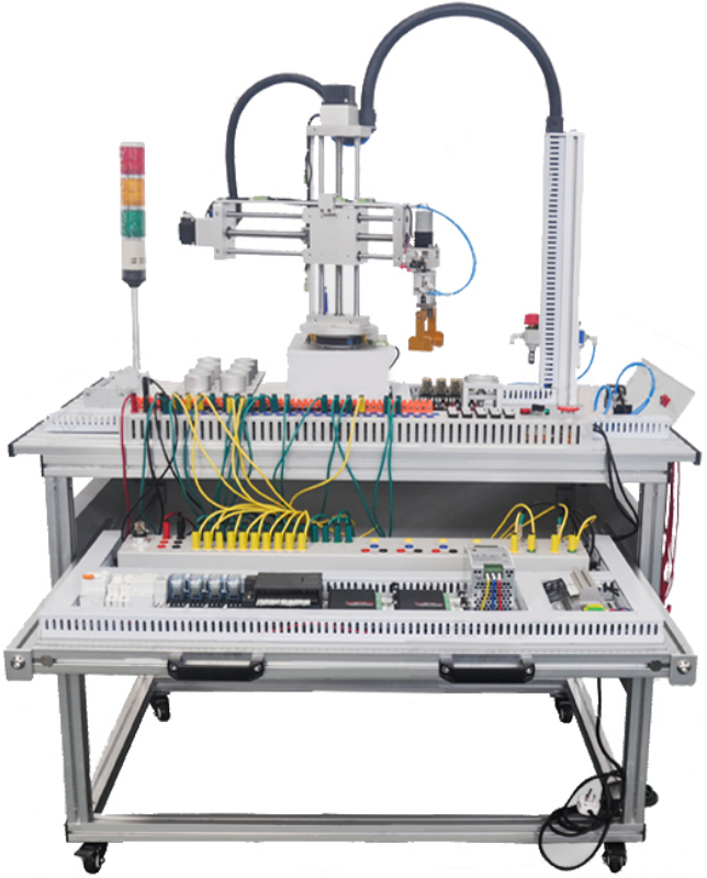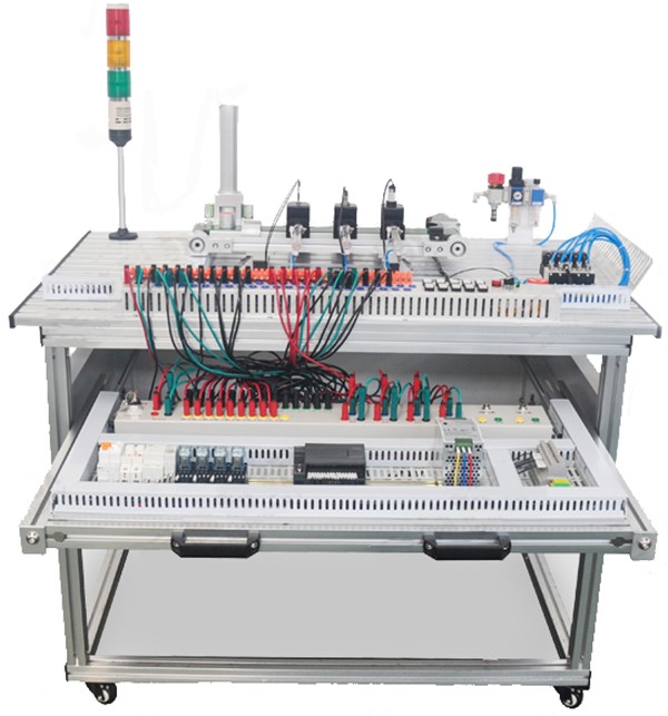 電工電子與PLC實訓臺通過上述實訓設備,學生可在實訓室中完成PLC的基本指令編程練習、三相異步電動機控制練習、PLC觸摸屏控制設計練習以及如流水燈控制、起重機控制、十字路交通燈控制、三層電梯控制等實際設計項目的練習。同時,通過外掛電子實訓設備,學生可以通過實訓驗證基爾霍夫定律、疊加原理、戴維南諾頓定理、雙口網絡、互易定理等電子相關定理。電工電子電拖PLC綜合實訓考核裝置主要承擔《電工技術實訓》、《PLC及其應用》、《模擬電子技術實訓》、《數字電路實訓》、《電力拖動實驗實訓》、《電力拖動實驗實訓》、《PLC可編程控制器基礎電路實訓