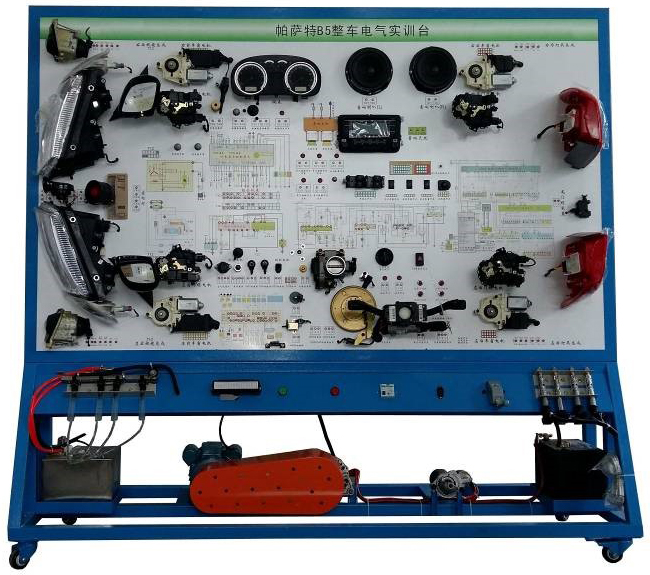2、整車(chē)電器實(shí)訓(xùn)臺(tái):該設(shè)備采用大眾帕薩特B5整車(chē)電器實(shí)物為基礎(chǔ),充分展示汽車(chē)發(fā)動(dòng)機(jī)防盜系統(tǒng)、儀表系統(tǒng)、燈光系統(tǒng)、雨刮系統(tǒng)、喇叭系統(tǒng)、點(diǎn)火系統(tǒng)、電動(dòng)車(chē)窗系統(tǒng)、電動(dòng)門(mén)鎖、音響系統(tǒng)、起動(dòng)系統(tǒng)和充電系統(tǒng)等汽車(chē)電器各系統(tǒng)的組成結(jié)構(gòu)和工作過(guò)程。