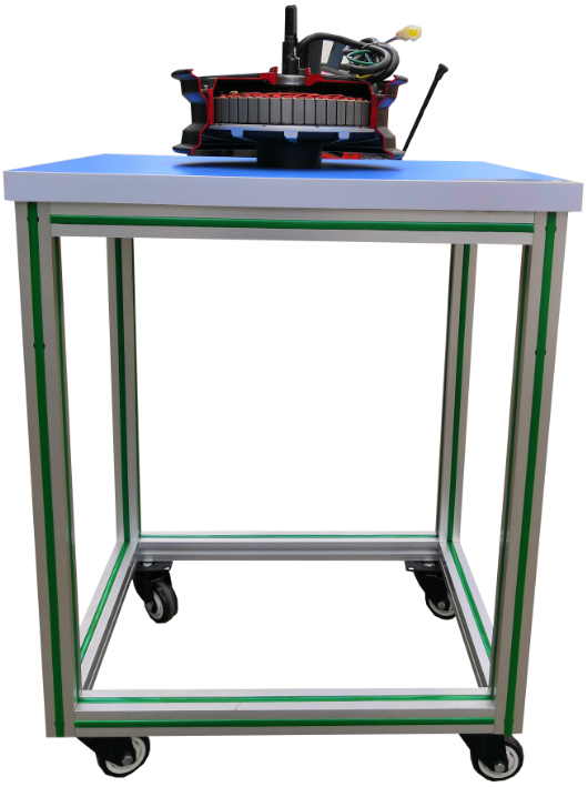 5、拆裝發(fā)動(dòng)機(jī)(運(yùn)轉(zhuǎn))帶翻轉(zhuǎn)架:采用大眾TSI缸內(nèi)直噴電控汽油發(fā)動(dòng)機(jī)總成(易于拆裝),組裝在專(zhuān)用發(fā)動(dòng)機(jī)拆裝翻轉(zhuǎn)架上。采用減速翻轉(zhuǎn)機(jī)構(gòu),可使發(fā)動(dòng)機(jī)任意角度旋轉(zhuǎn),并能任意位置鎖止,便于學(xué)生從不同的角度進(jìn)行拆卸和裝配。底部放置大面積接油盤(pán),便于小零件或螺絲的集中存放。拆裝翻轉(zhuǎn)架采用高強(qiáng)度的鋼結(jié)構(gòu)焊接,表面經(jīng)噴涂工藝處理,底部帶有自鎖腳輪裝置,可移動(dòng)式,方便教學(xué)。