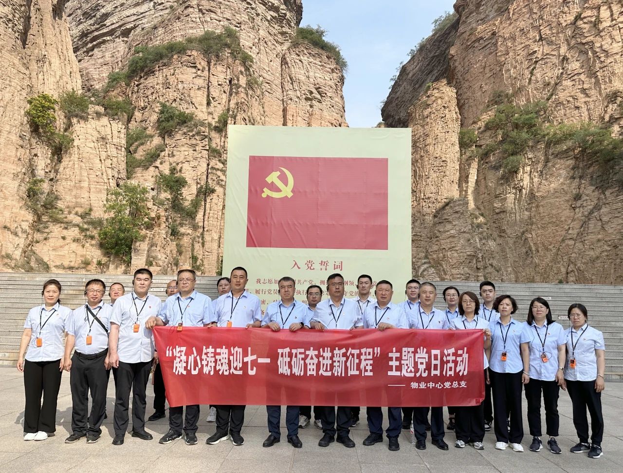 參觀結(jié)束后,黨員同志們懷著無(wú)比崇敬的心情莊嚴(yán)肅立在紅色廣場(chǎng),整齊列隊(duì),面向黨旗,舉起右拳,重溫入黨誓詞。錚錚誓言表達(dá)了作為黨員的責(zé)任與擔(dān)當(dāng),許下了對(duì)黨忠誠(chéng)、永不叛黨的堅(jiān)定承諾。