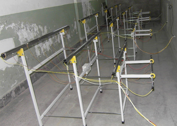 配有四根不同長度和直徑的電鍍紫銅管,管內設置電加熱器;每根管子的表面裝4~6支測溫傳感器,以測定其表面平均溫度,測溫傳感器采用進口DS18B20;每根橫管電加熱器配備電子集成固體調壓模塊無機調節。測試儀表箱設有(每根橫管電加熱器)數顯功率表;所有測試數據由7寸觸摸屏同屏顯示,不銹鋼實驗支架。