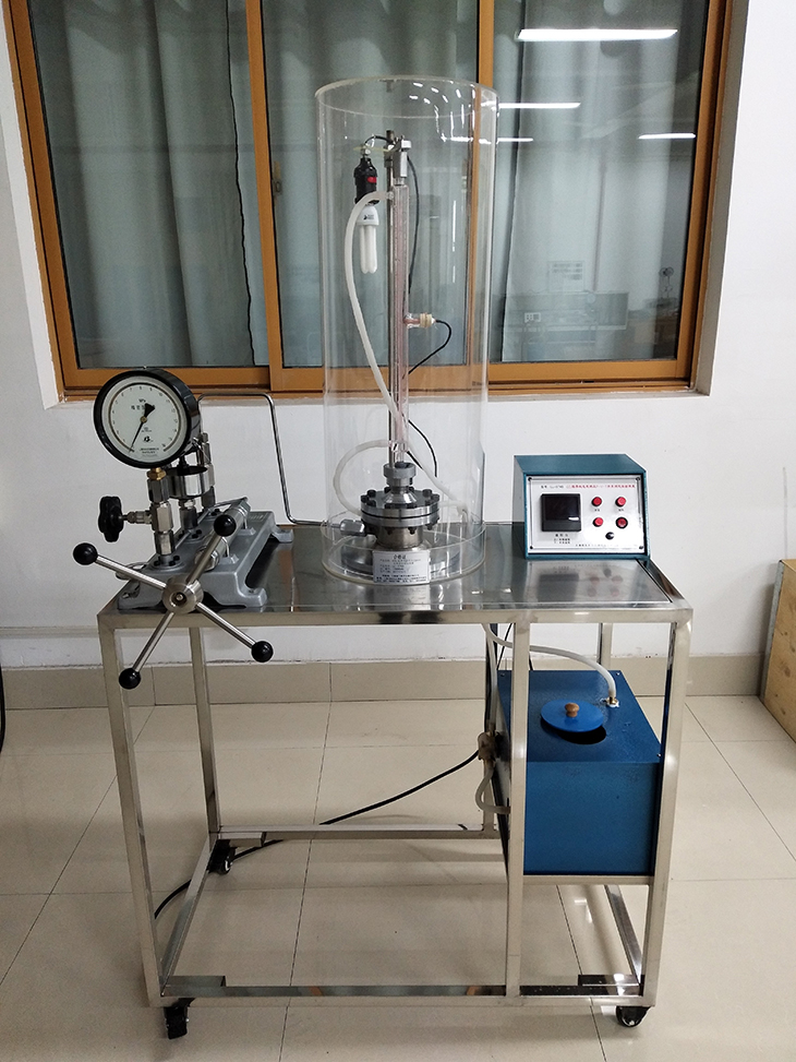 3、高壓容器,用45號鋼加工焊接而成,表面采用鍍鉻處理;高壓玻璃管,厚度3mm,耐壓11MPa