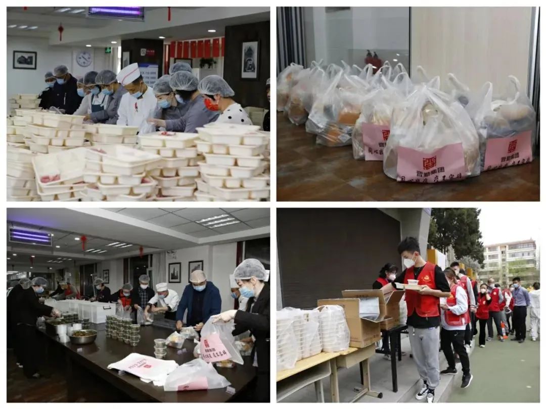 在新建路片區(qū)、下元街道紡織街社區(qū)轄內(nèi)26個(gè)核酸檢測(cè)采集點(diǎn),工作人員正在將精心制作的4000余份營(yíng)養(yǎng)餐送到抗疫一線。